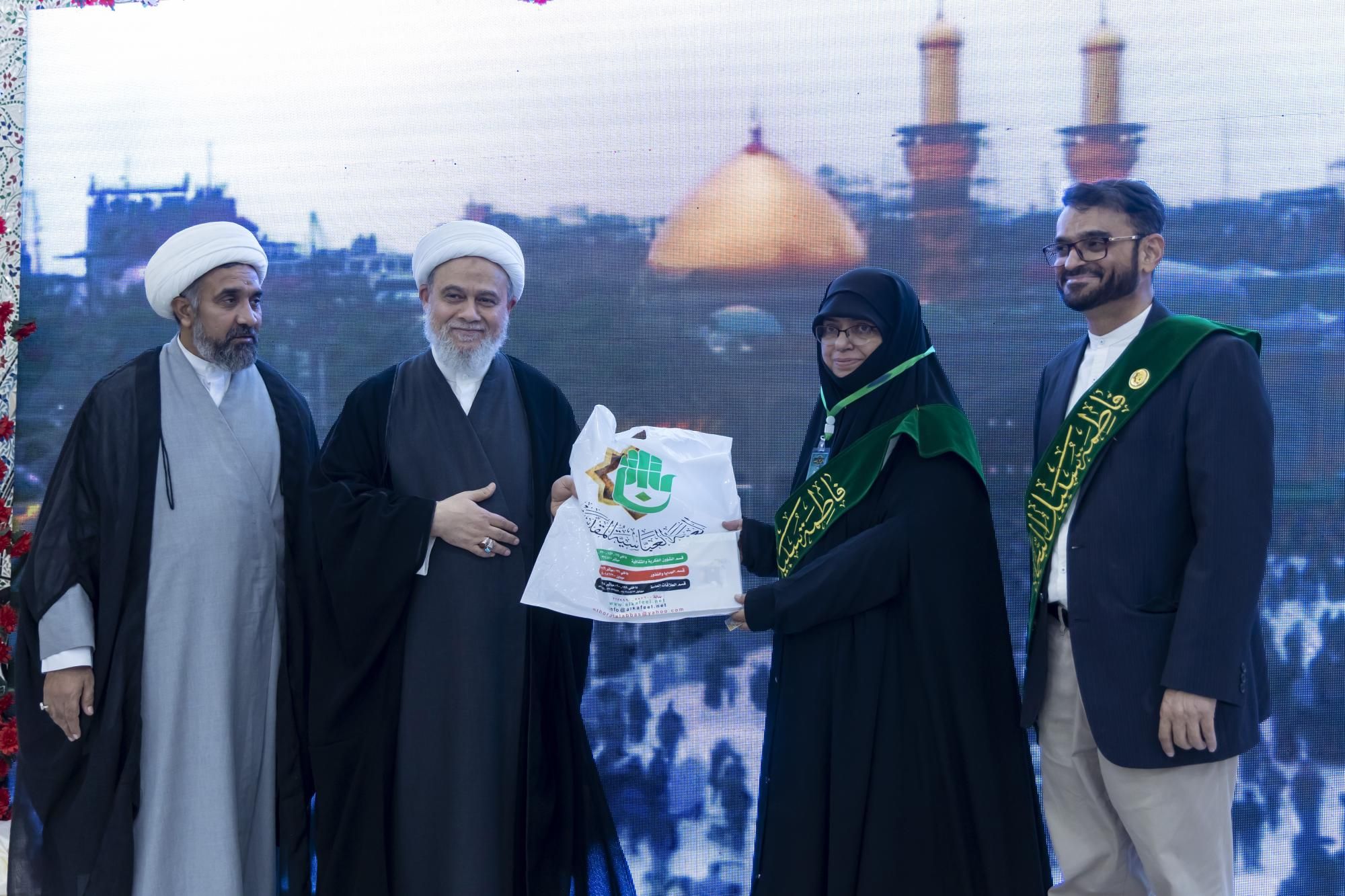 وكرّم الباحثات كلٌّ من رئيس قسم الشؤون الدينية في العتبة المقدّسة الشيخ صلاح الكربلائي، ومعاون رئيس قسم استلام الهدايا والنذور السيد محمد جلوخان، وممثّلها في باكستان الشيخ ناصر عباس النجفي.