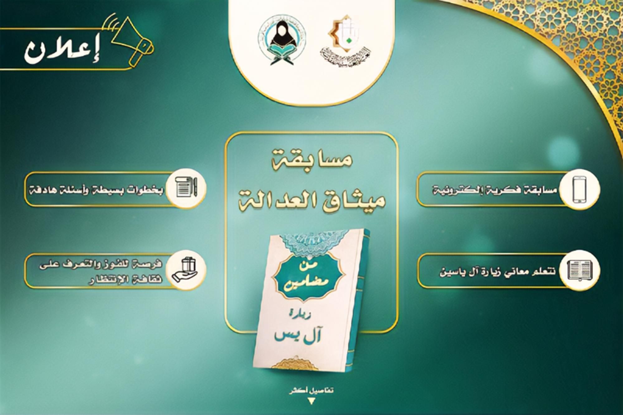 وجاءت المسابقة بمناسبة ذكرى ولادة الإمام المهدي (عجل الله فرجه)، وتتناول مضامين زيارة آل ياسين المباركة، لما تحمله من معانٍ روحية وعقائدية، تسهم في تعزيز صلة المؤمن بإمام زمانه، وتوسيع الوعي الديني والثقافي بقضية الإمام المصلح ودوره الإلهي في إرساء العدالة.